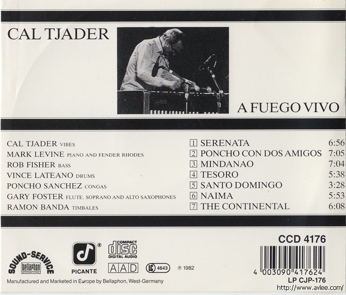 JAZZCD名称:A Fuego Vivo 艺术家名称:Cal Tjader发行公司:BELIAPHON 发行编号:CCD 4176发行日期:1982年