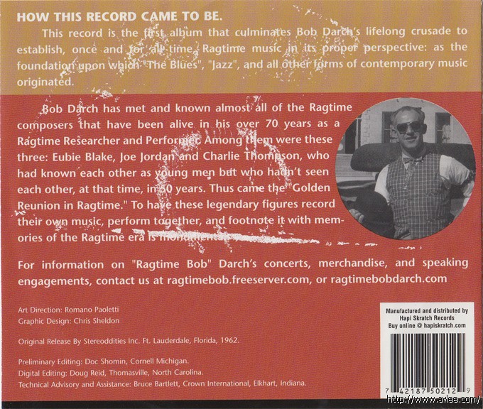 JAZZCD名称:Golden Reunion in Ragtime 艺术家名称:Eubie Blake发行公司: Stereoddities 发行编号:HS75021发行日期:1962年