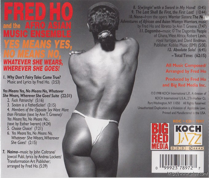 JAZZCD名称:Yes Means Yes, No Means No, Whatever She Wears, Wherever She goes! 艺术家名称:Fred Ho & The Afro Asian Jazz Ensemble 发行公司:KOCH发行编号:KOC-CD-787发行日期:1998年