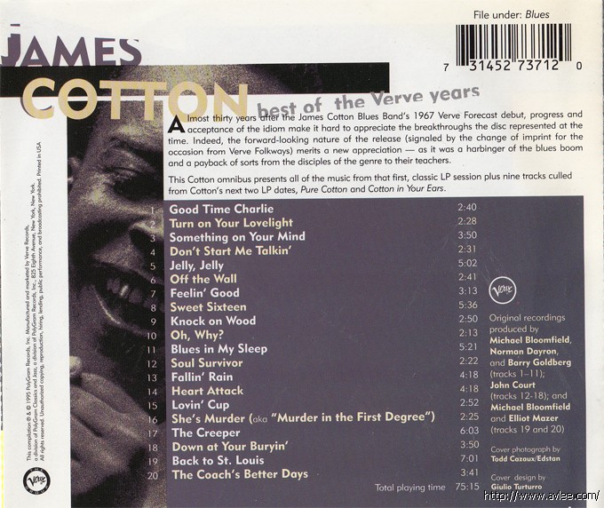 JAZZCD名称:Best of the Verve Years 艺术家名称:James Cotton 发行公司:VERVE发行编号:314527371-2发行日期:1995年