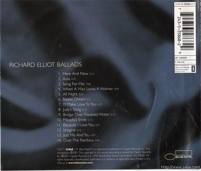 JAZZCD名称:Ballads艺术家名称:Richard Elliot 发行公司:Blue Note Records 发行编号:72433586829发行日期:2000年