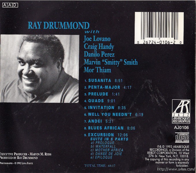 JAZZCD名称:Ray Drummond艺术家名称:Excursion发行公司:ARABESQUE JAZZ发行编号:AJ0106发行日期:1993年