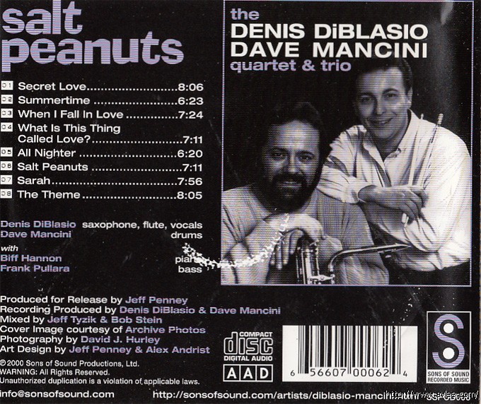 JAZZCD名称:Salt Peanuts 艺术家名称:Denis Diblasio 发行公司:Sons of Sound 发行编号:SSPCD006发行日期:2000年