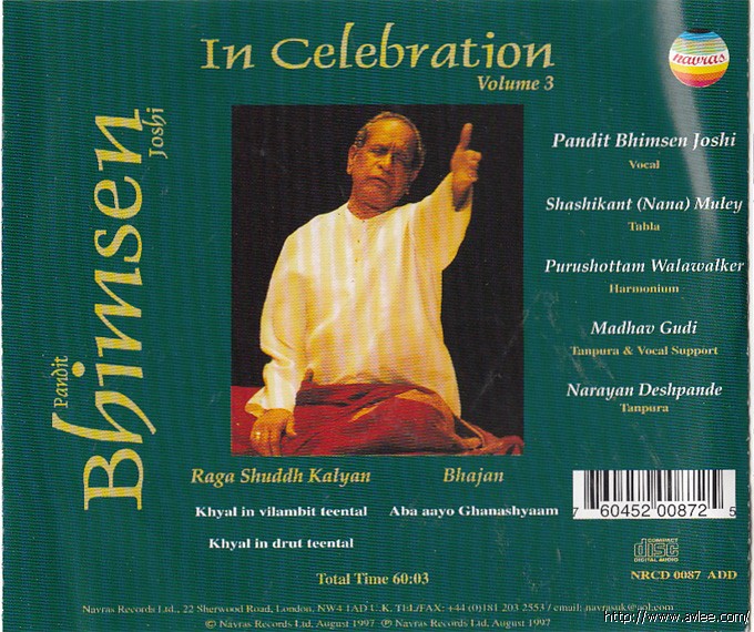 JAZZCD名称:In Celebration (Vol. 3)艺术家名称:Bhimsen Joshi发行公司:Navras Records发行编号:NRCD 0087发行日期:1997年