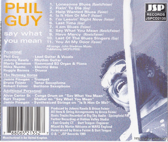JAZZCD名称:Say What You Mean 艺术家名称:Phil Guy发行公司: Jsp Records 发行编号:JSPCD2135发行日期:1999年