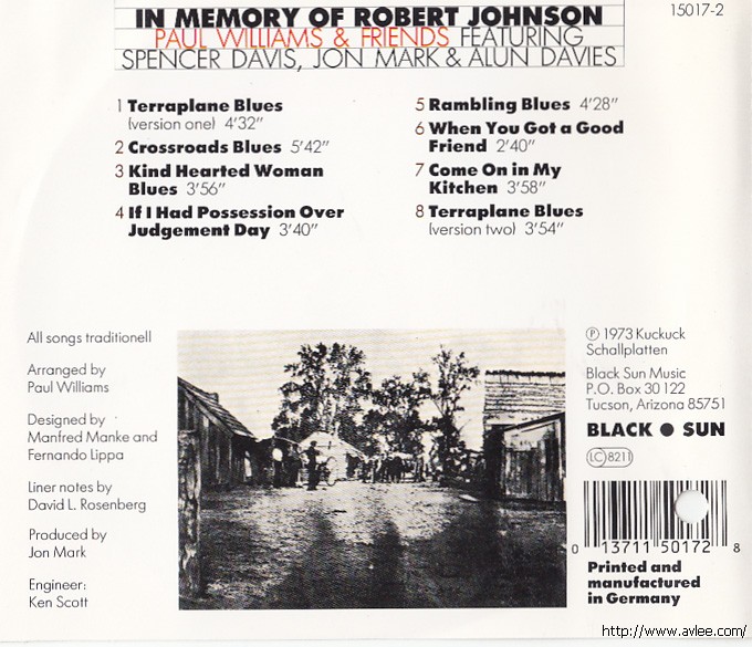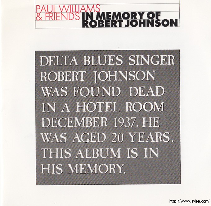 JAZZCD名称:In Memory of Robert Johnson 艺术家名称:Paul Williams发行公司:Black Sun Music 发行编号:SUN 15017-2 发行日期:1973年