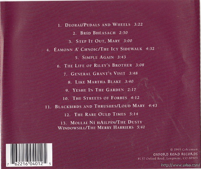 JAZZCD名称:The Life of Riley's Brother 艺术家名称:Colcannon 发行公司:Oxford Road Records 发行编号:ORP-401发行日期:1995年