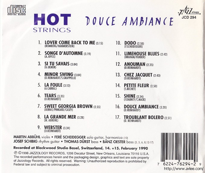 唱片曲目: 1 Lover, Come Back To Me 2 Songe D'Automne 3 Si Tu Savais 4 Minor Swing 5 La Foule 6 Tears 7 Sweet Georgia Brown 8 La Grande Mer 9 Webster 10 Dodo 11 Limehouse Blues 12 Anouman 13 Chez Jacquet 14 Petite Fleur 15 Shine 16 Douce Ambiance 17 Troublant Bolero