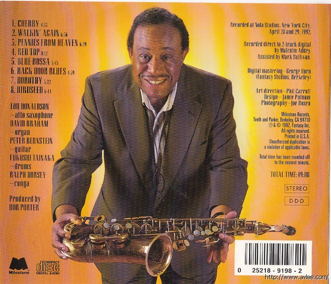 JAZZCD名称:Bird Seed 艺术家名称:Lou Donaldson 发行公司:Milestone发行编号:MCD-9198-2发行日期:1992年