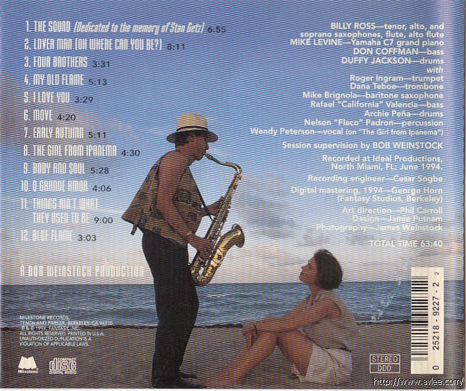JAZZCD名称:Sound: A Tribute to Stan Getz 艺术家名称:Billy Ross发行公司:MILESTONE发行编号:MCD-9227-2发行日期:1994年