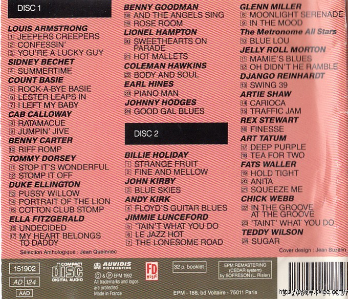 JAZZCD名称:Jazz Anthology: 1939 艺术家名称:Various Artists 发行公司:EPM 发行编号:151902发行日期:1992年