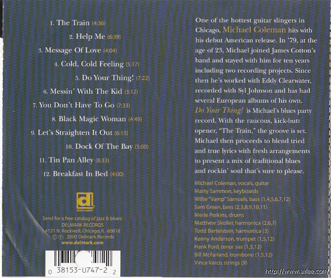 JAZZCD名称: Do Your Thing!艺术家名称:Michael Coleman Guitar 发行公司:Delmark 发行编号:DE-747发行日期:2000年