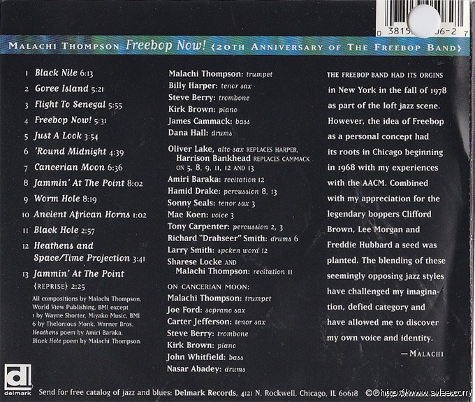 唱片曲目: 1.Black Nite 2.Goree Island 3.Flight To Senegal 4.Freebop Now! 5.Just A Look 6.'round Midnight 7.Cancerian Moon 8.Jammin' At The Point 9.Worm Hole See All 2 10.Ancient African Horns 11.Black Hole 12.Heathens And Space/Time Projection 13.Jammin' at the Point (Reprise)
