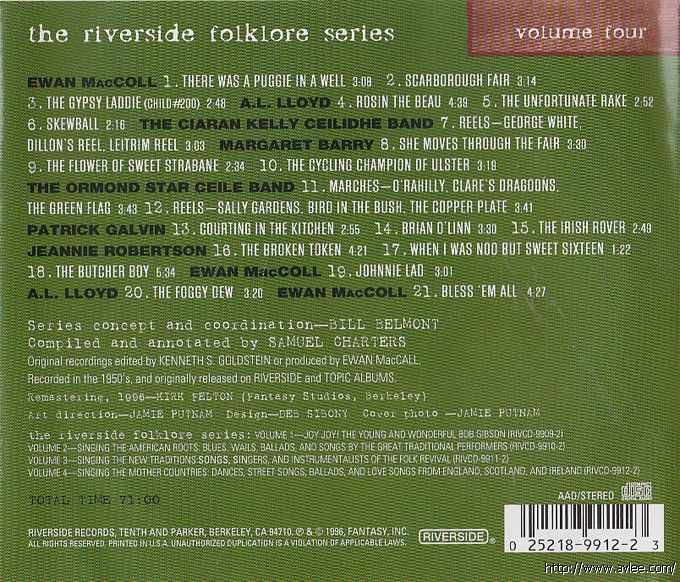 JAZZCD名称:Riverside Folklore Series, Vol. 4: Singing the Mother Countries艺术家名称:Various Artists发行公司:RIVERSIDE发行编号:RIVCD-9912-2发行日期:1996年