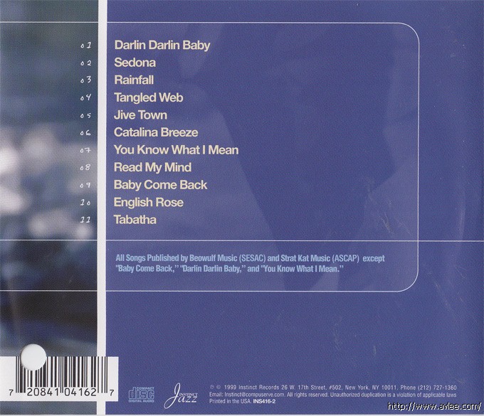 唱片曲目: 1. Darlin Darlin Baby 2. Sedona 3. Rainfall 4. Tangled Web 5. Jive Town 6. Catalina Breeze 7. You Know What I Mean 8. Read My Mind 9. Baby Come Back 10. English Rose 11. Tabatha