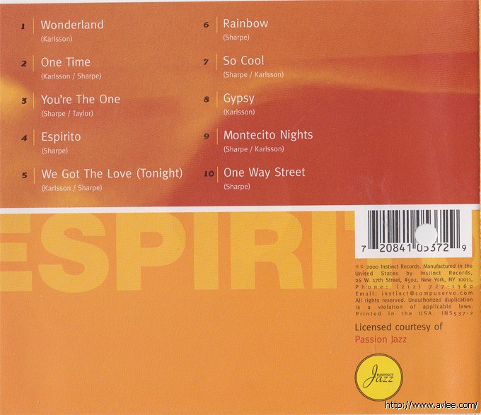JAZZCD名称:Peace of Mind艺术家名称:Espirito |发行公司:Instinct Records发行编号:INS-537-2发行日期:2000年