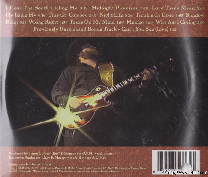 唱片曲目: 1. I Hear the South Calling Me 2. Midnight Promises 3. Love Turns Mean 4. Fly Eagle Fly 5. This Ol' Cowboy 6. Night Life 7. Trouble in Dixie 8. Shadow Rider 9. Wrong Right 10. Texas on My Mind 11. Mexico 12. Why Am I Crying 13. Can't You See
