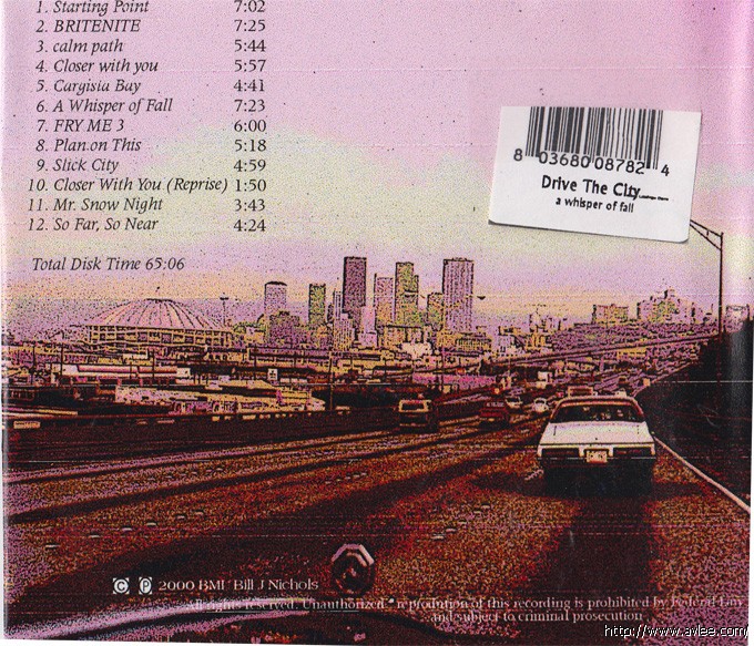 JAZZCD名称:A Whisper Of Fall 艺术家名称:DRIVE THE CITY 发行公司:BMI 发行编号:803680087824 发行日期:2000年 唱片美图: