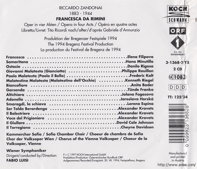 JAZZCD名称:Zandonai: Francesca Da Rimini