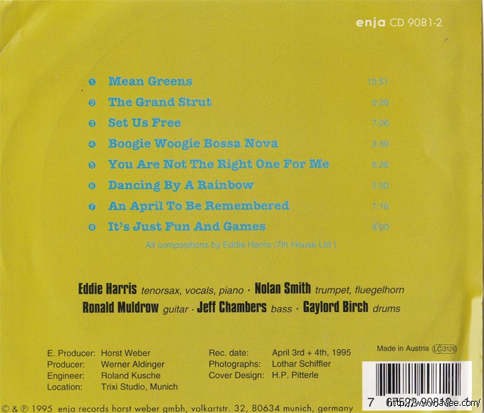 JAZZCD名称:Dancing By A Rainbow艺术家名称:Eddie Harris发行公司: Enja发行编号:CD 9081-2发行日期:1995年
