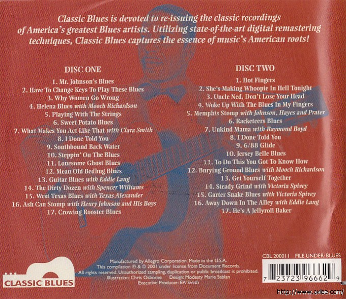 JAZZCD名称:Essential 艺术家名称:Lonnie Johnson发行公司:Classic Blues 发行编号:CBL 200011发行日期:2001年