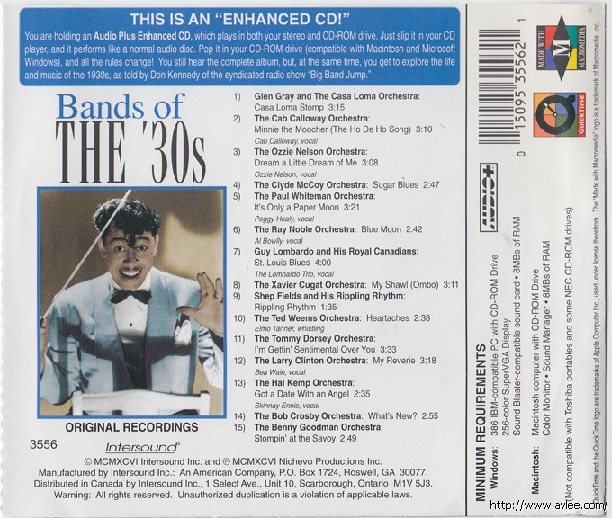 JAZZCD名称:Bands of the '30s艺术家名称:Various Artists 发行公司:ORIGINAL RECORDINGS发行编号:3556发行日期:1993年