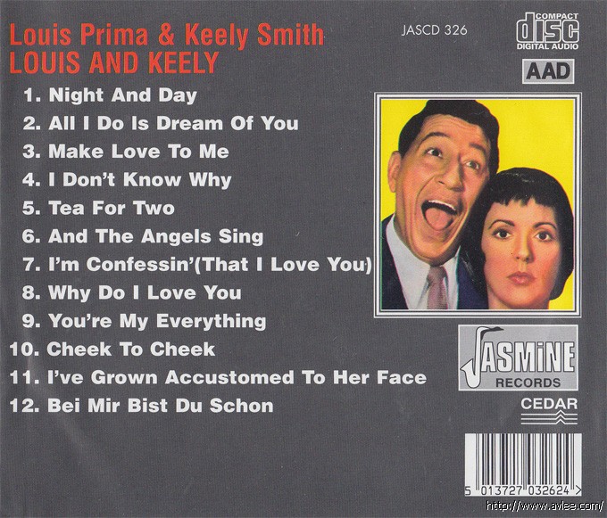 JAZZCD名称:Louis and Keely! 艺术家名称:Louis Prima & Keely Smith 发行公司:Jasmine Music 发行编号:JASCD 326发行日期:1993年