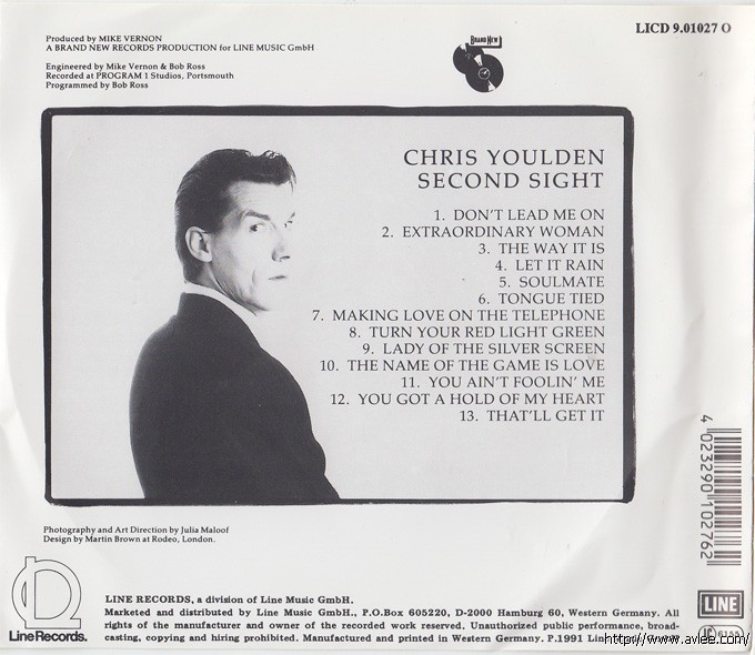 JAZZCD名称:Second Sight MP3 Download艺术家名称:Chris Youlden 发行公司:Line 发行编号:LICD 9.01027 O发行日期:1991年