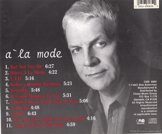 JAZZCD名称: A_la_mode 艺术家名称:Bob Ackerman发行公司:CMG发行编号:CMD 8065发行日期:2001年