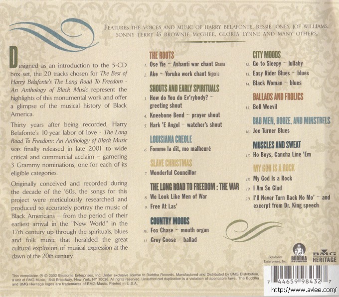 JAZZCD名称:The Best of Harry Belafonte's Long Road to Freedom: An Anthology of Black Music