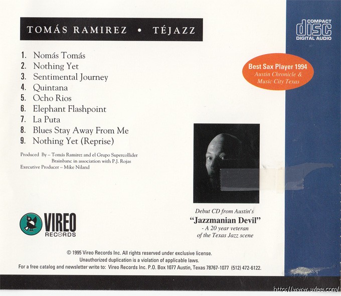 JAZZCD名称:Tejazz 艺术家名称:Tomas Ramirez 发行公司:Vireo 发行编号:VRCD 1103发行日期:1995年