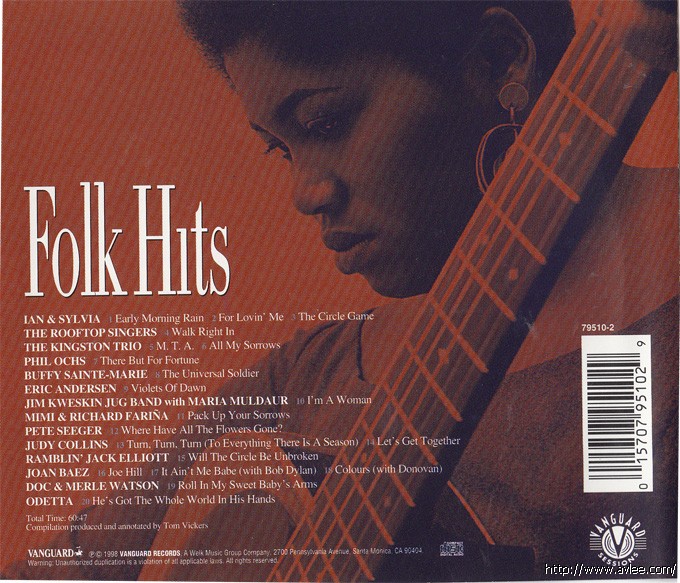 JAZZCD名称:Folk Hits 艺术家名称:Various Artists 发行公司:Vanguard Records 发行编号:79510-2发行日期:1998年