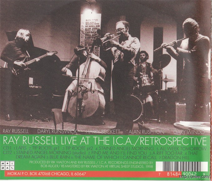 JAZZCD名称:Live at the I.C.a./Retrospective艺术家名称:Ray Russell发行公司: Moikai Records发行编号:M 4 CD发行日期:2000年