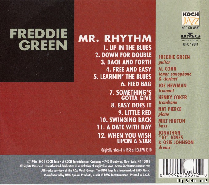 JAZZCD名称:Mr Rhythm艺术家名称:Freddie Green 发行公司:Koch Records 发行编号:KOC CD-8587发行日期:2001年