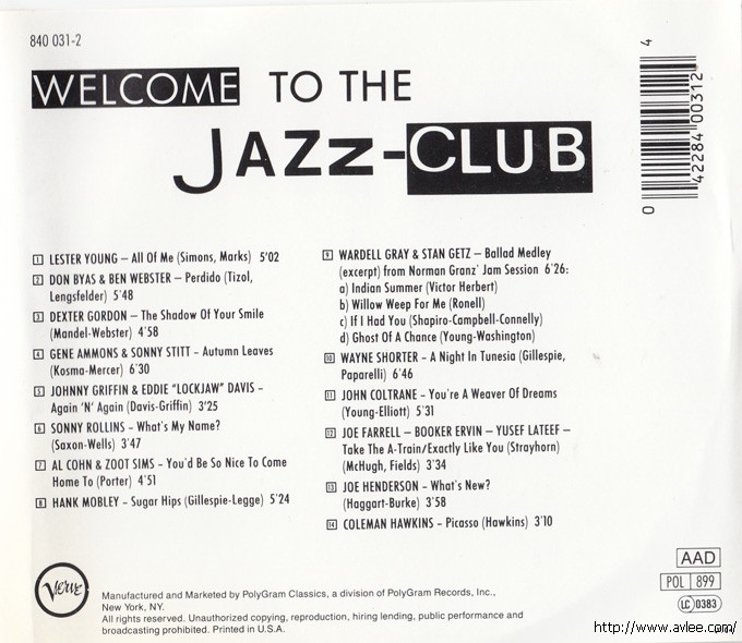 JAZZCD名称: Jazz Club: Tenor Sax艺术家名称:Jazz-Club (Series)发行公司:Polygram Records发行编号:840 031-2发行日期:1989年