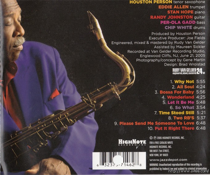 JAZZCD名称:All Soul艺术家名称:Houston Person 发行公司: Highnote发行编号:HCD 7146发行日期:2005年