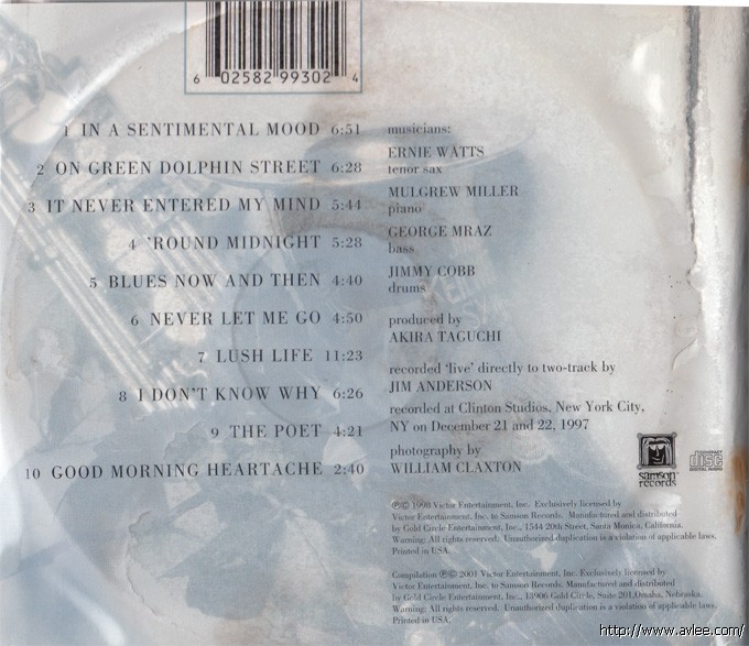 JAZZCD名称:Classic Moods 艺术家名称:Ernie Watts 发行公司:SAMSON RECORDS发行编号:SA-29930-2发行日期:2001年