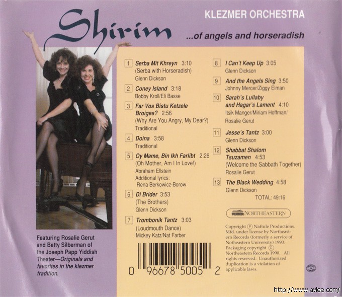 JAZZCD名称:Of Angels and Horseradish艺术家名称: Shirim Klezmer Orchestra发行公司:Copyright 发行编号:NR 500发行日期:1990年
