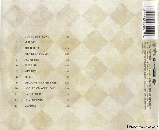 唱片曲目: 1. Got To Be Strong 2. Mirrors 3. The Bottle 4. Aria De La Mia Vita 5. All My Life 6. Pressure 7. Sunshine 8. Blue Light 9. Hooked On Your Love 10. Shadows And The Light 11. Earth Child 12. Compliments 13. Closure