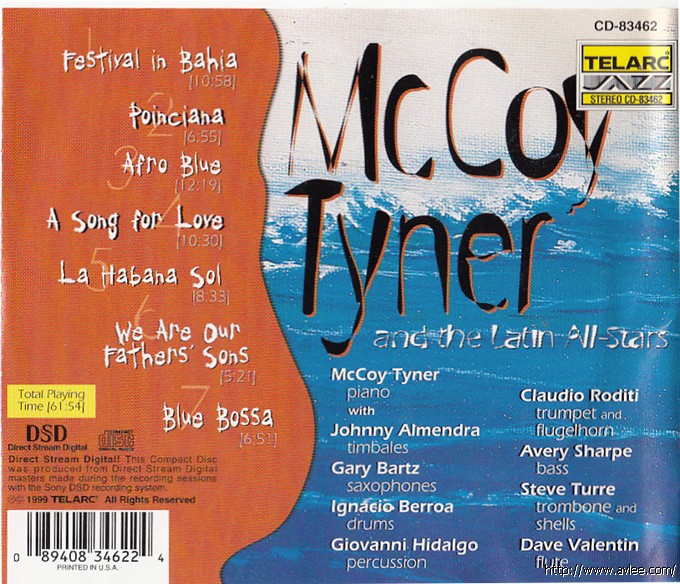 JAZZCD名称:Mccoy Tyner & Latin All-Stars艺术家名称:McCoy Tyner发行公司:Telarc发行编号:CD-83462发行日期:1999年