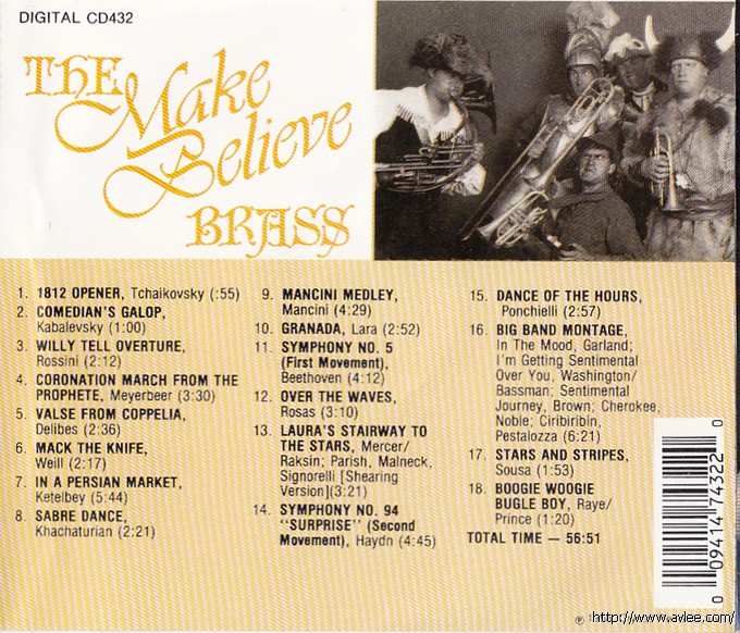 JAZZCD名称:The Make Believe Brass艺术家名称:Make Believe Brass发行公司:CRYSTAL RECORDS 发行编号:CD 432发行日期:1988年