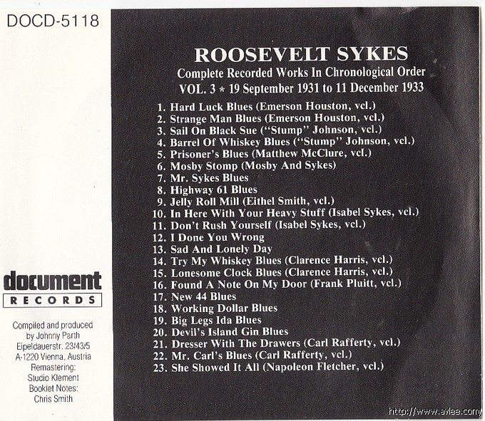 JAZZCD名称:Roosevelt Sykes Vol. 3 (1931-1933)