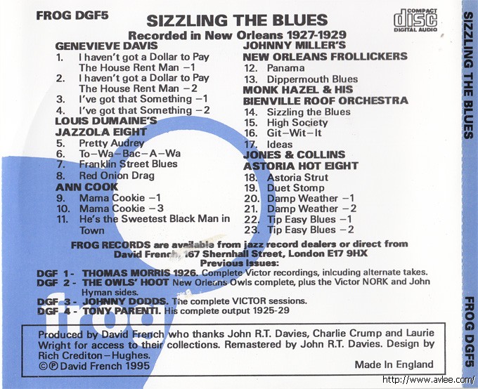 JAZZCD名称:Sizzling the Blues艺术家名称:Various Artists发行公司:Frog发行编号:1158639发行日期:1995年