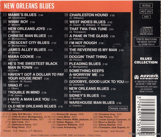 JAZZCD名称:New Orleans Blues 1923-1940艺术家名称:Various Artists发行公司:EPM发行编号:157612发行日期:1992年