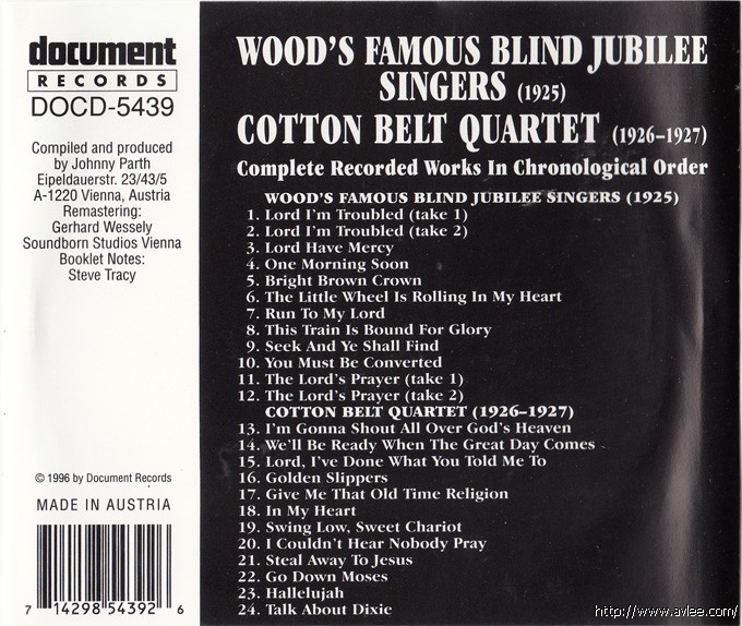 JAZZCD名称:Wood's Famous Blind Jubilee Singers (1925) Cotton Belt Quartet (1926-1927)