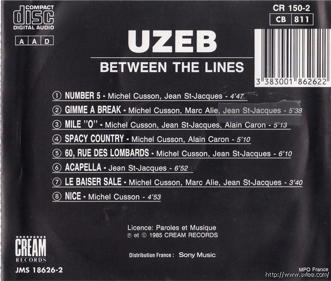 JAZZCD名称:Between the Lines 艺术家名称:UZEB发行公司:CREAM发行编号:CR-150-2发行日期:1985年