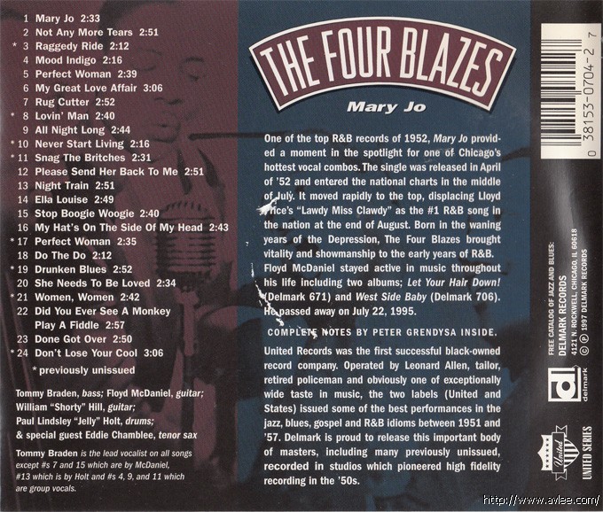 JAZZCD名称:Mary Jo艺术家名称:Four Blazers发行公司:DELMARK发行编号:DE-704发行日期:1997年