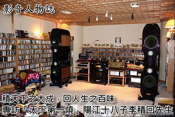 你可知道这个地球上,竟然有人能凭一己之力,购入珍藏了多达八百件的音响器材(其中大部分还是顶级旗舰机种)、超过六十万张黑胶唱片、 五十万张音乐CD、还有许多母带及DVD/BD影音软体吗?更令人讶异的是,这惊人的数量及记录,竟然是在不到十年的时间裡所累积达成的!难怪2007年年底,美国权威发烧音响杂誌TAS总编辑Robert Harley到访时,不禁讚誉其为「天下第一烧」音响迷(The World’s Number One Audiophile)。2010年5月1日,李积回先生更进一步,在「阳江十八子集团」企业总部大楼三楼用2000平方尺(约600坪)空间规划了近三十间展房,17间视听室裡宽7米、 长9米者就有六间,另有一间宽5米、长6.3米,其他十间展房则大约是3米×6米的规模,此外还会有一个可容纳80席的大型多功能视听会议中心以及一个音响杂誌阅览室,11间展房将以各种不同音乐类型划分,透过不同的主题来展示李先生丰富的音乐软体典藏。