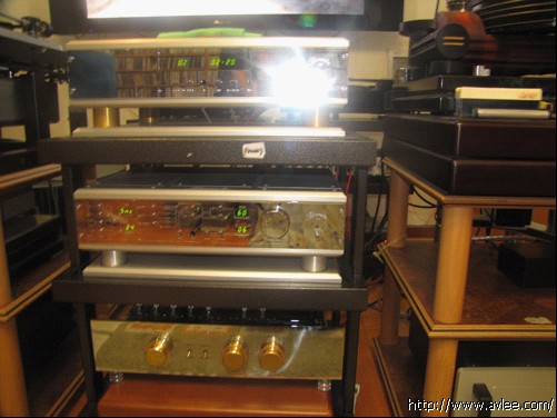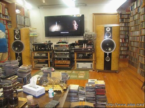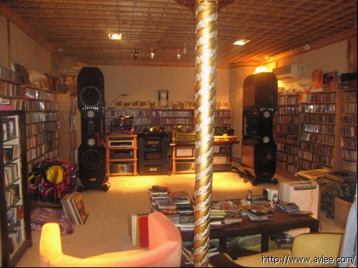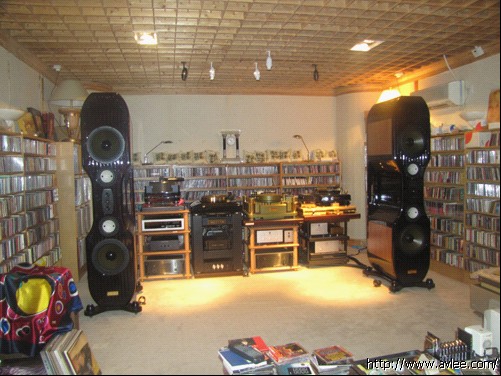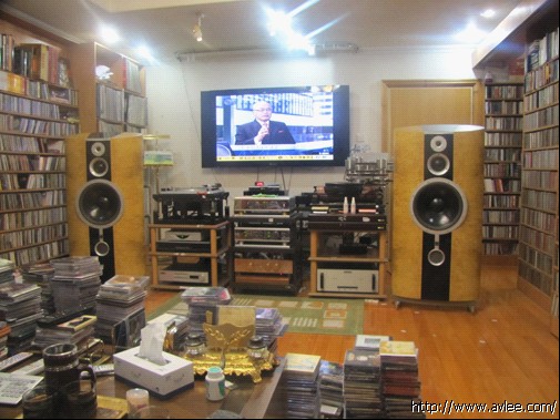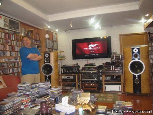 这是李积回先生的第一陈列室,太多的唱片使得这个不算很打的试听陈列室显得有些拥挤,李先生一边为笔者介绍这里的硬件和软件,还不忘要整理一下他的宝贝儿们。