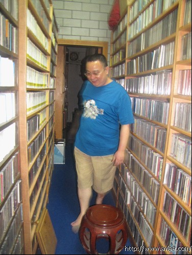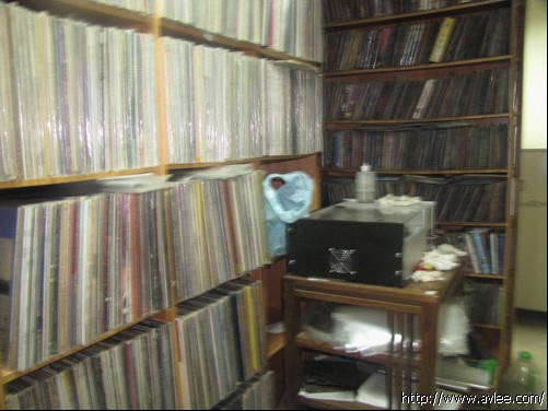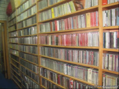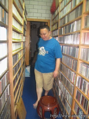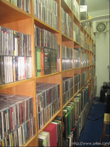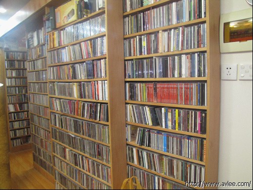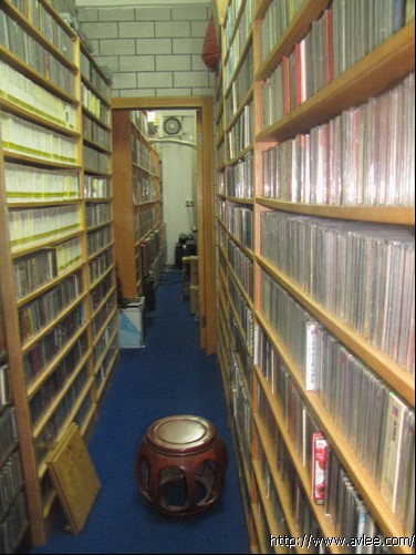 穿过这个小小的试听陈列室,笔者又随李积回先生进入了一条仅容一人的狭窄巷子,这个巷子里没有别的东西,全是CD,密密麻麻的塞满个个齐顶的陈列架。